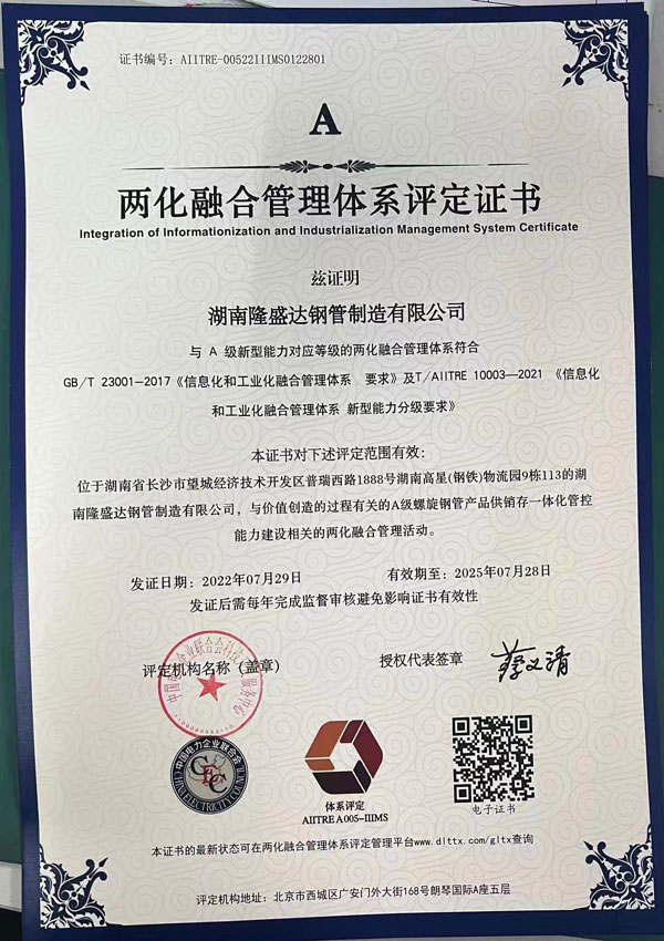 兩化融合評(píng)定證書(shū)