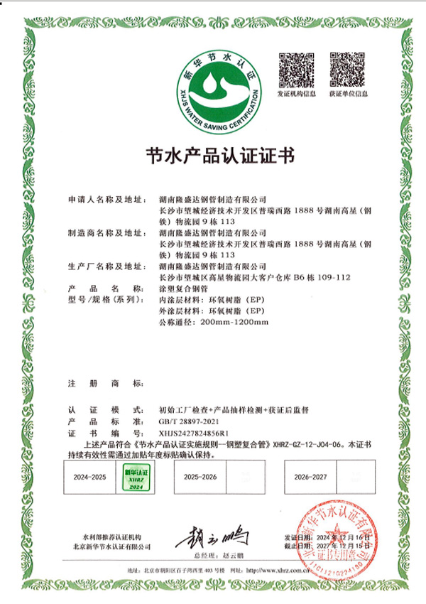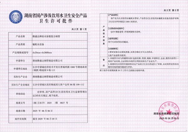 隆盛達牌給水涂塑復(fù)合鋼管管材&管件涉水批件