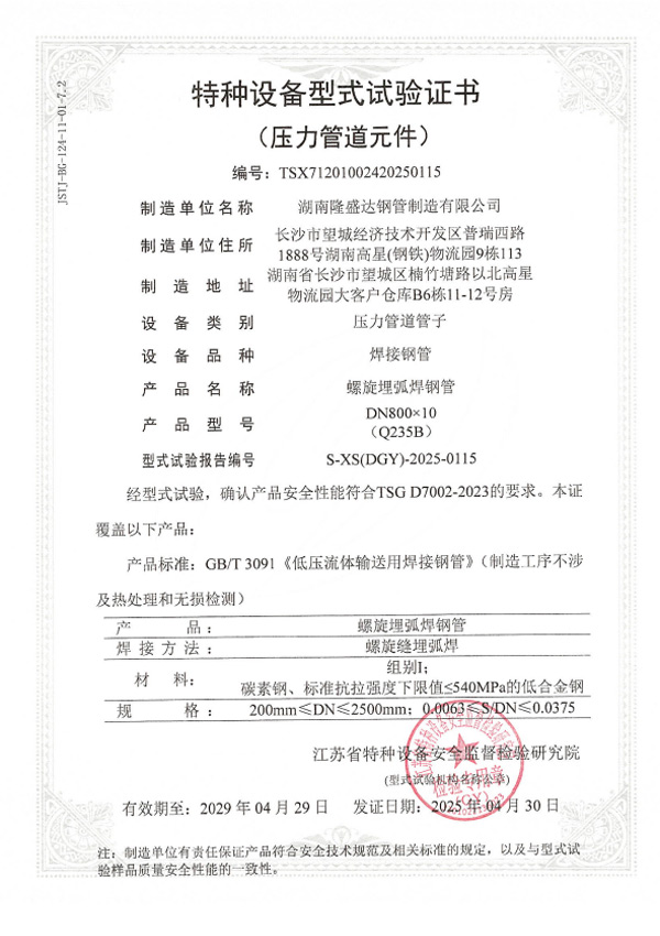 湖南螺旋管生產(chǎn)資質(zhì),湖南鋼管廠家認證,API5L特種設(shè)備許可,ISO9001鋼管企業(yè)